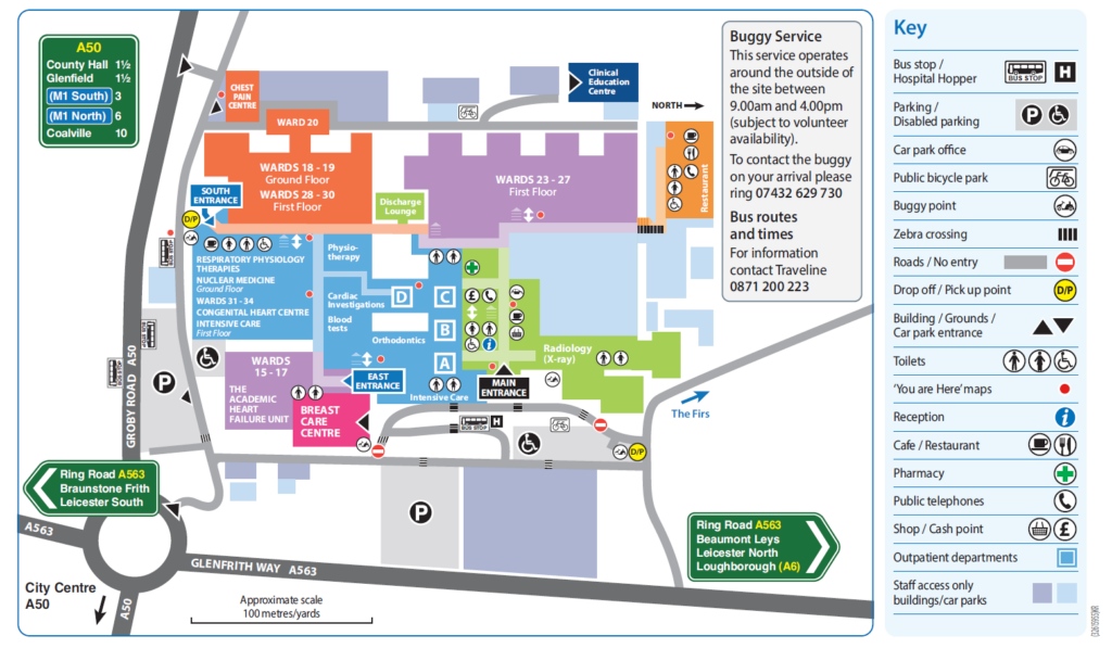 Download a map of the Glenfield Hospital.